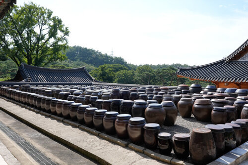 Fermented soy sauce in an earthen jar at Ja Shim’s temple