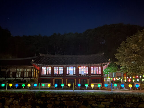 Lotus Sutra recitation continues into the night at Young Ji Sa Temple