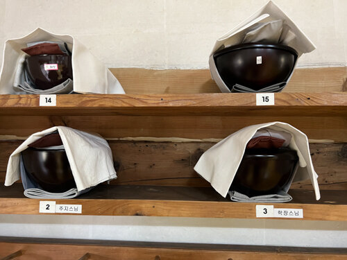 The one-week stay at Young Ji Sa was the highlight of my summer research, as I was given full access to observe everyday matters at the Buddhist nunnery. Young Ji Sa operates a four-year Buddhist institution for novice nuns—one of four remaining in Korea—and advanced studies in Buddhist precepts. Young Ji Sa is located deep in the mountains with running water from the valley. It is isolated in a sense that it requires one hour’s driving to go to a market. While I stayed there, there were twenty-four in-residence nuns, and a few additional nuns who were commuting to take courses on Buddhist precepts. All in-residence nuns were quite busy with Buddhist practices and communal works, in addition to their respective responsibility at the temple.
