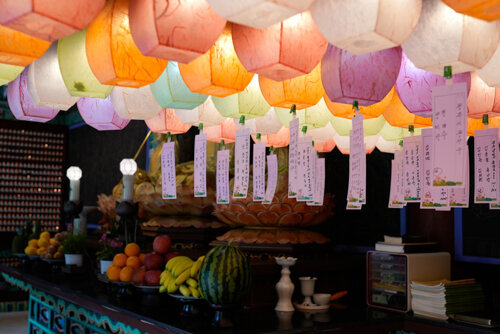 Lanterns lit in commemoration of Buddha’s birthday as part of a ceremony at Ja Shim’s Temple. Each lantern was paid by an individual, wishing wellness of family and ancestor.