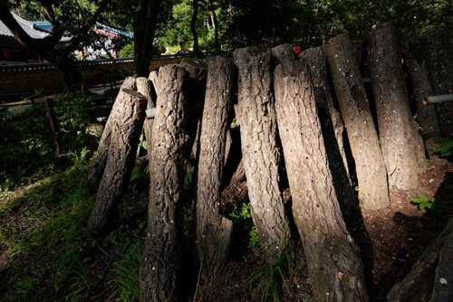 Oak tree with seeds of shiitake mushrooms at Se Wun Sa Temple